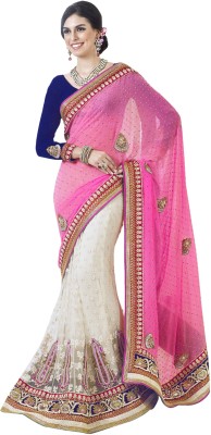 Triveni Self Design Lehenga Saree Net Saree(White, Pink)