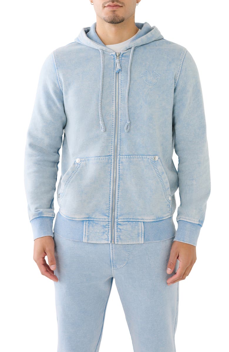 True Religion Brand Jeans Acid Cotton Blend Zip-Up Hoodie, Main, color, PACIFIC CO