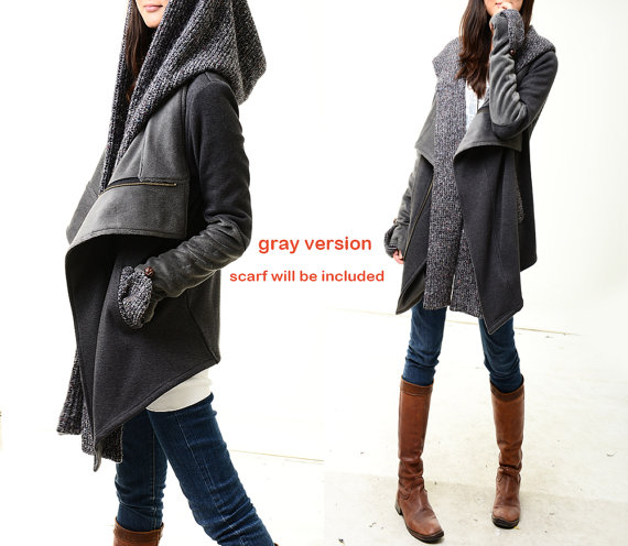 Tuareg - thick cotton fleece jacket and scarf set / lined cotton coat free scarf / thermo jacket / hoodie jacket (Y1228)