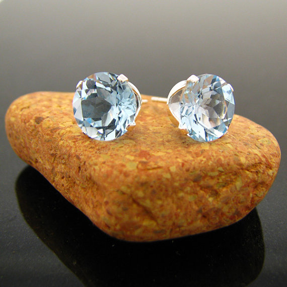 Unique sky blue topaz earrings, blue topaz earrings, blue topaz big studs