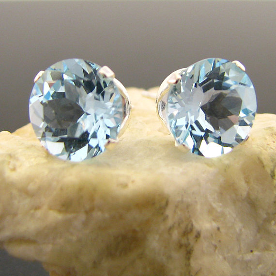 Unique sky blue topaz earrings, blue topaz earrings, blue topaz big studs - round topaz 10 mm