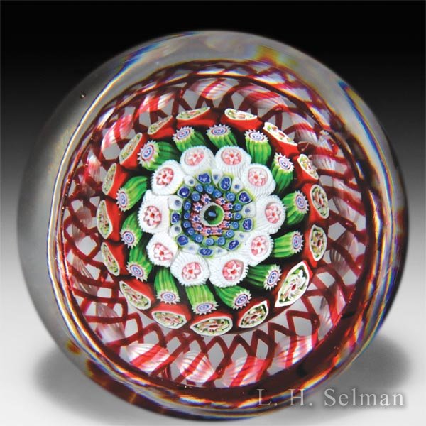 Unusual antique Saint Louis red mushroom with a red torsade paperweight. by Saint Louis Antique
