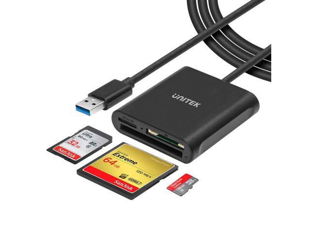 USB Card Reader 3-Slot USB 3.0 Compact Flash Card Reader, Read 3 Cards Simultaneously, Aluminum Memory Card Adapter CF, TF, SDXC, SDHC, SD, Micro SDXC, Micro SD, Micro SDHC- 4FT (Black)
