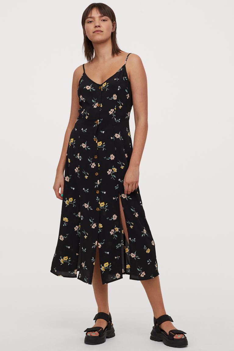 V-neck Dress - Black/floral