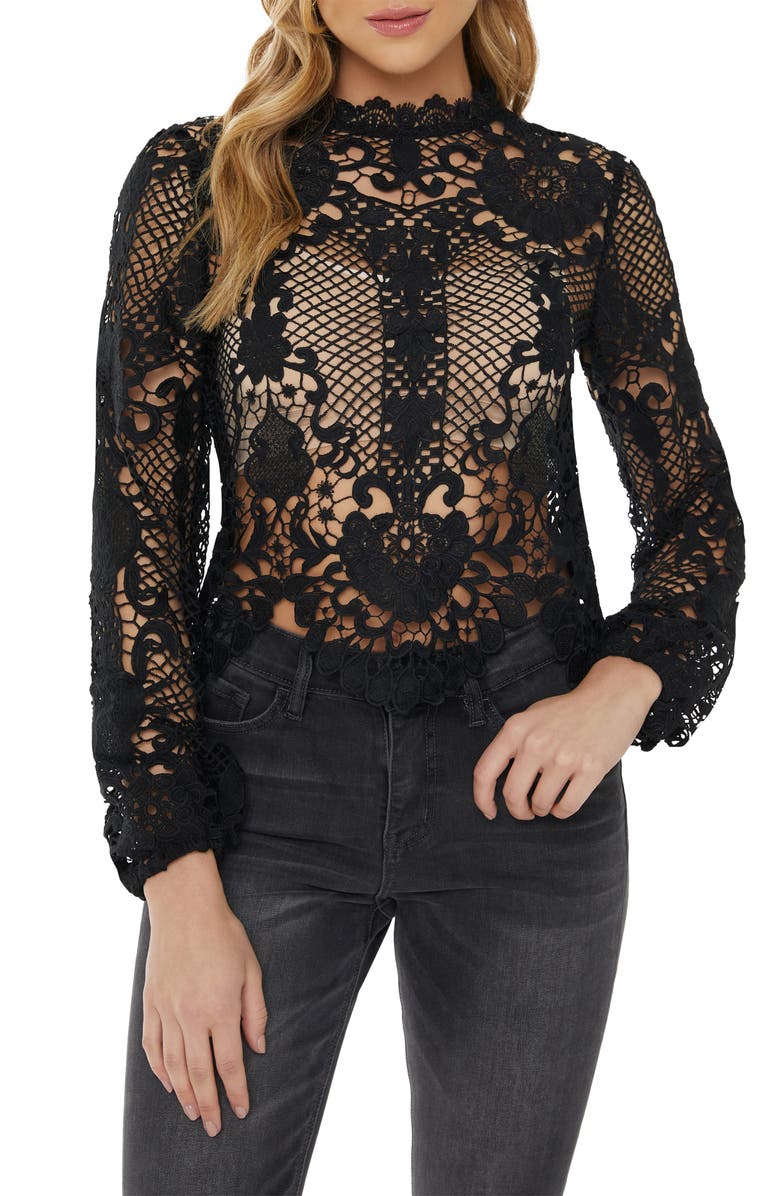 VICI COLLECTION Crochet Lace Long Sleeve Top, Main, color, BLACK