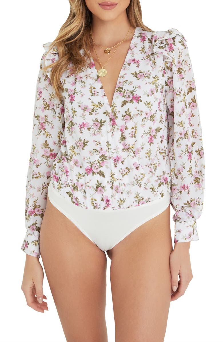 VICI COLLECTION Floral Chiffon Bodysuit, Main, color, WHITE/ PINK FLORAL