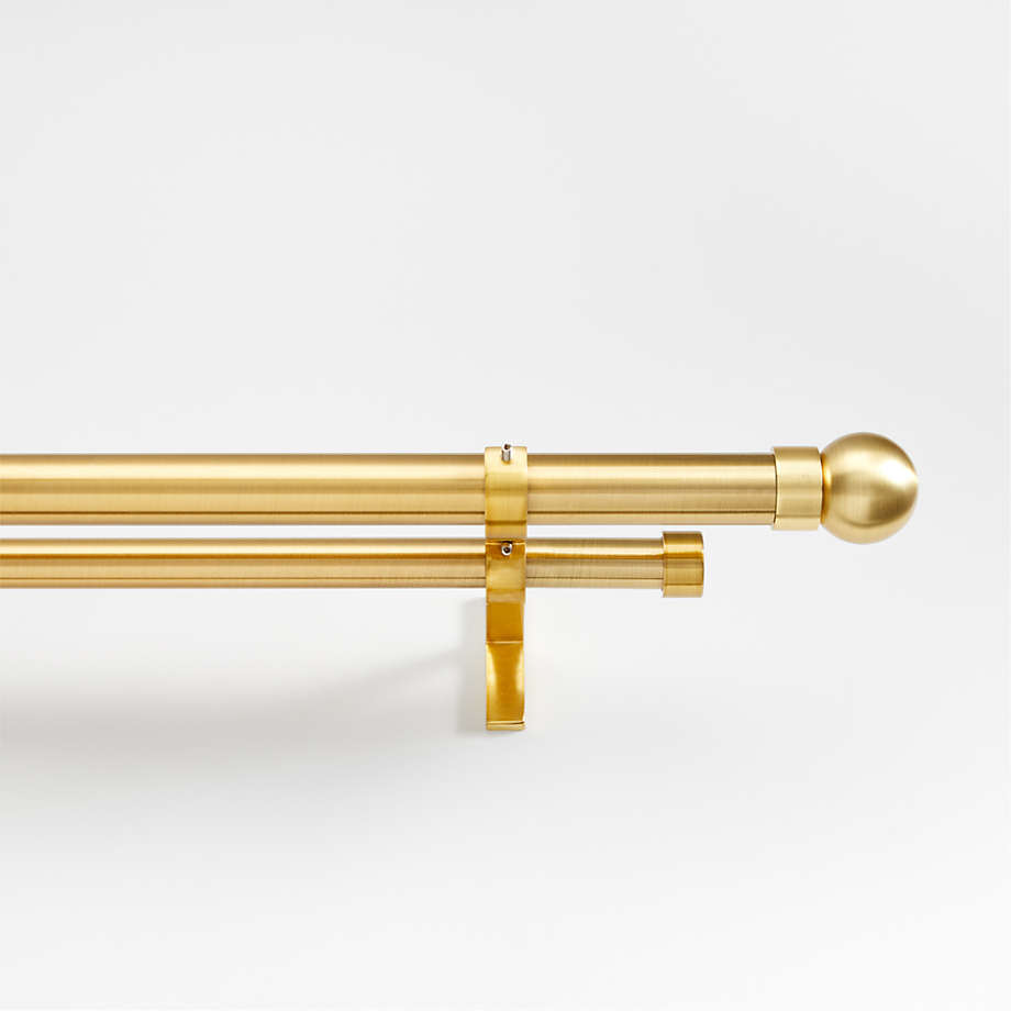 View Brass 1" Double Curtain Rod and Small Round End Cap Finials Set 48"-88" - image 1 of 2