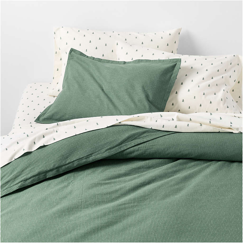 View Cozysoft Organic Cotton Flannel Mountain Green Stripe King Duvet Cover - image 1 of 8