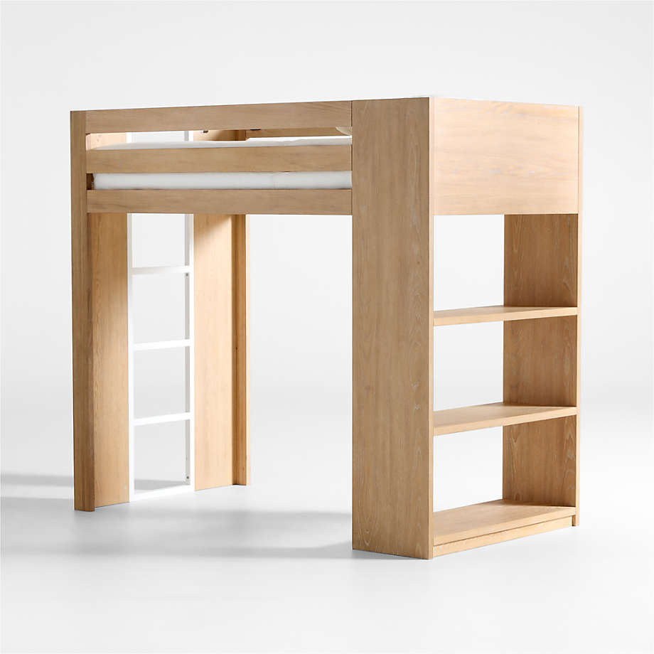 View Grayson Natural Brown Oak Wood Kids Storage Loft Bed with Built-In Ladder - image 1 of 8
