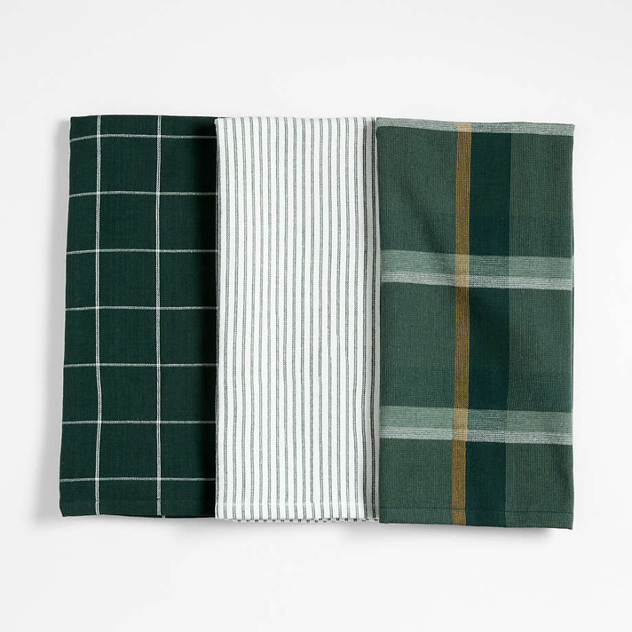 View Holiday Green Plaid and Stripe Organic Cotton Kitchen Towels, Set of 3 - image 1 of 4