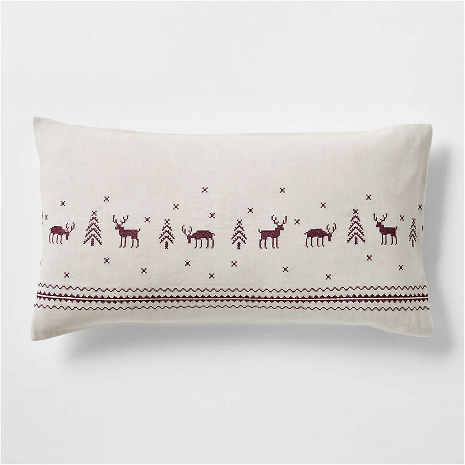View Holiday Reindeer Embroidered Cotton Linen Cross Stitch Natural King Bed Pillow Sham - image 1 of 6