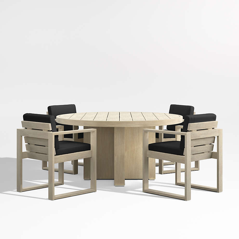 View Mallorca 60" Wood Outdoor Dining Table Set with Cast Charcoal Grey Sunbrella ® Cushions - image 1 of 9