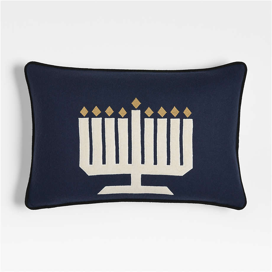 View Menorah 22"x15" Deep Indigo Blue Multi Throw Pillow Cover by Joan Anderson - image 1 of 3
