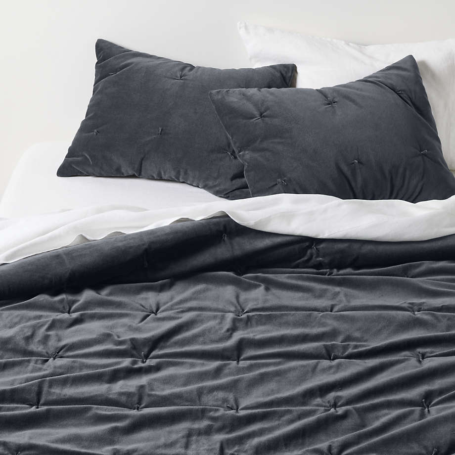 View Organic Cotton Linen Velvet Midnight Navy King Quilt - image 1 of 9