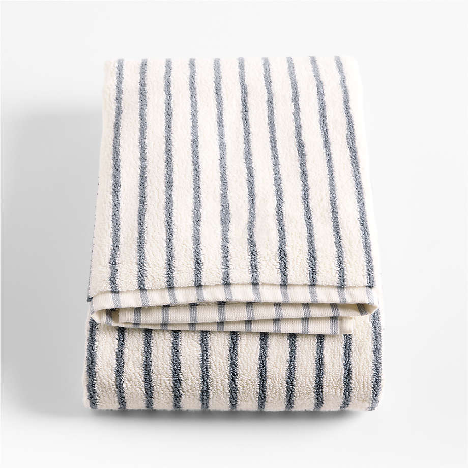View Organic Turkish Cotton Pampas Ivory and Evening Blue Stripe Bath Towel - image 1 of 8