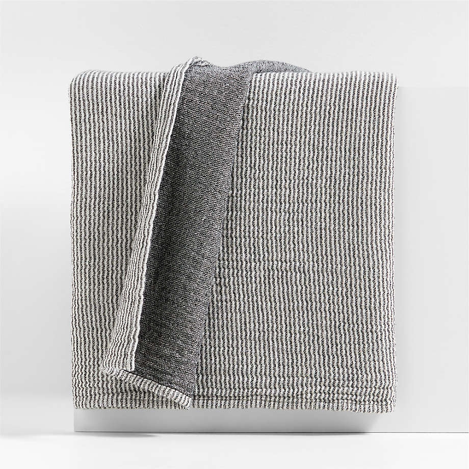 View Reversible Stripe Gauze 80"x80" Ink Black and Arctic Ivory Bed Blanket - image 1 of 4