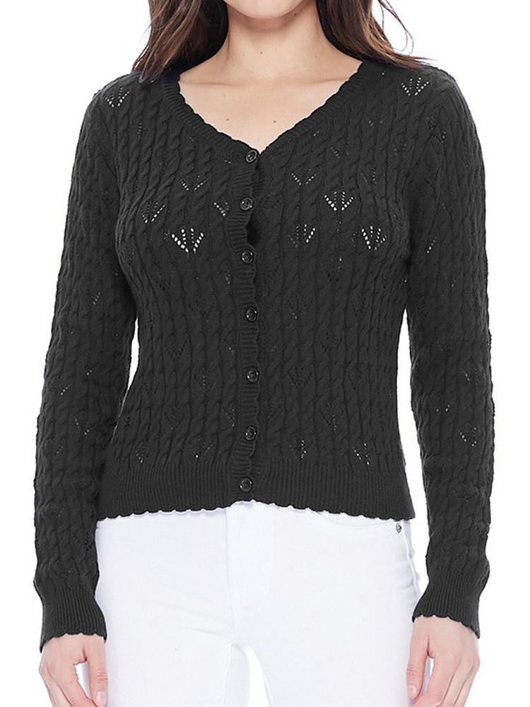 Vintage Lace Patterned V-Neck Long Sleeves Scallop Hem Casual Cardigan MK3659