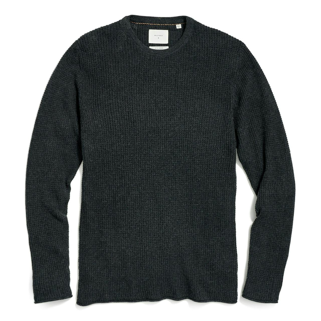 Waffle Cotton Cashmere Crewneck Sweater - Charcoal | Crew Neck Sweaters