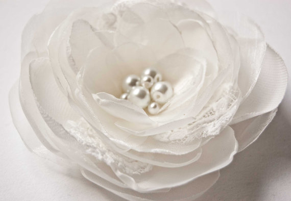 Wedding hair accessory - Bridal hair flower - Hair clip ivory, pearls, lace - Bridal hair accessories