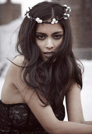 WHITE FLORAL AND BLACK IVY TRIM HEAD CROWN/GARLAND