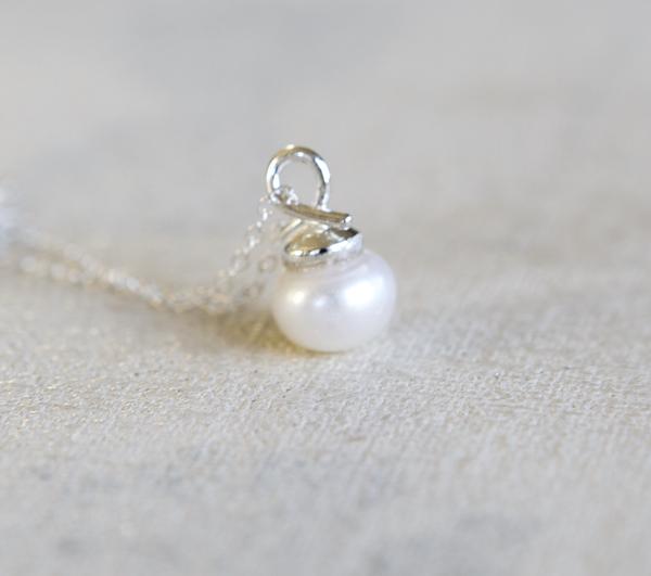White Pearl Sterling Silver Necklace - 16" Length