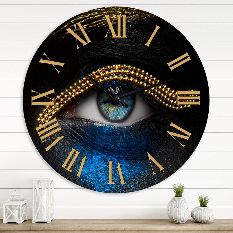 Woman Eyes With Gold Chain and Blue Pigment - Modern wall clock