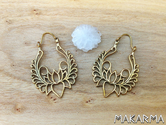 Women Lotus Earrings Bohochic Ear Weights Earrings Tribal Brass Earrings Boho Bohemian Women Yoga Earrings Healing Meditation Jewelry