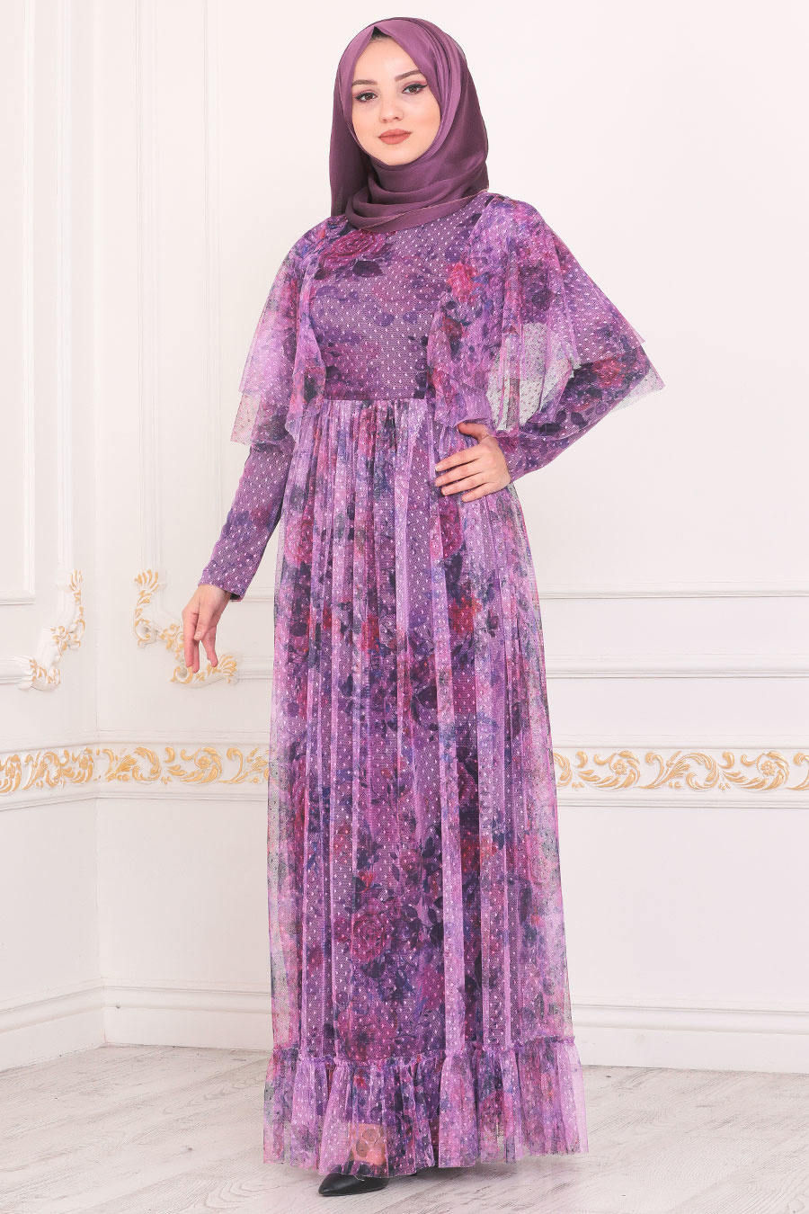 Women's Patterned Purple Dress