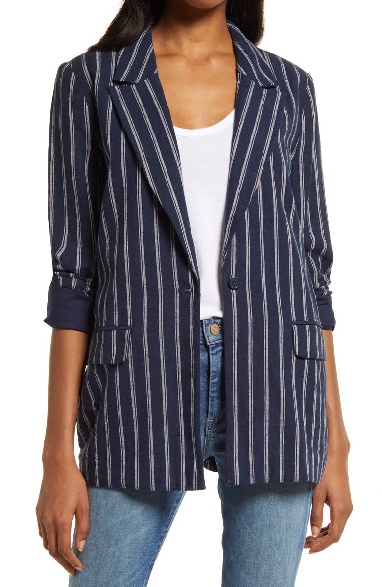 Women's Stripe Linen Blend Blazer, Main, color, NAVY BLAZER STRIPE
