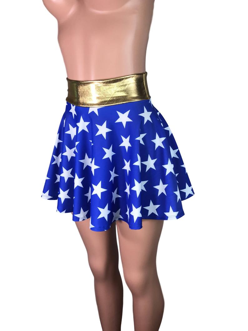 Wonder Woman Inspired High Waisted Skater Skirt - Clubwear, Rave Wear, Mini Circle Skirt - Jessie Graff