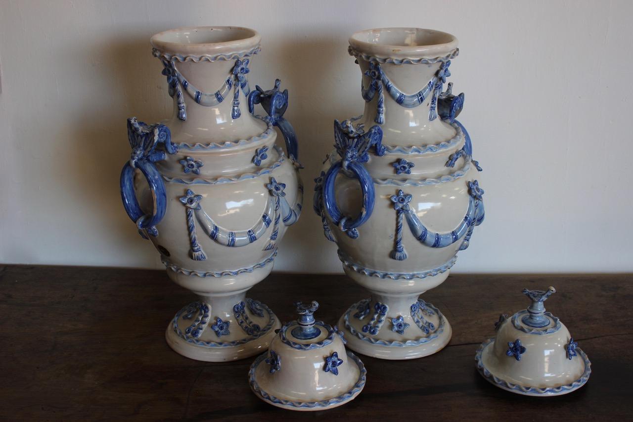Wonderful Pair of 1970s Spanish Blue & White Vases for Casa Pupo London