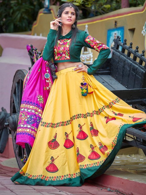 Yellow and Green Soft Cotton Navratri Special Ghagra Choli