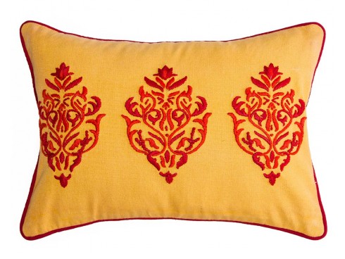 Yellow / Red Hand Embroidered Cotton Cushion Cover