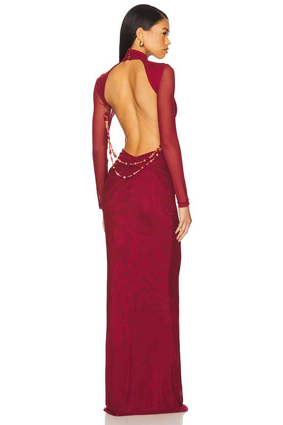 YLLW THE LABEL Salome Beaded Dress in Merlot | REVOLVE