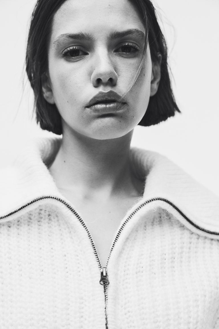 Zip-up Cardigan - White - Ladies
